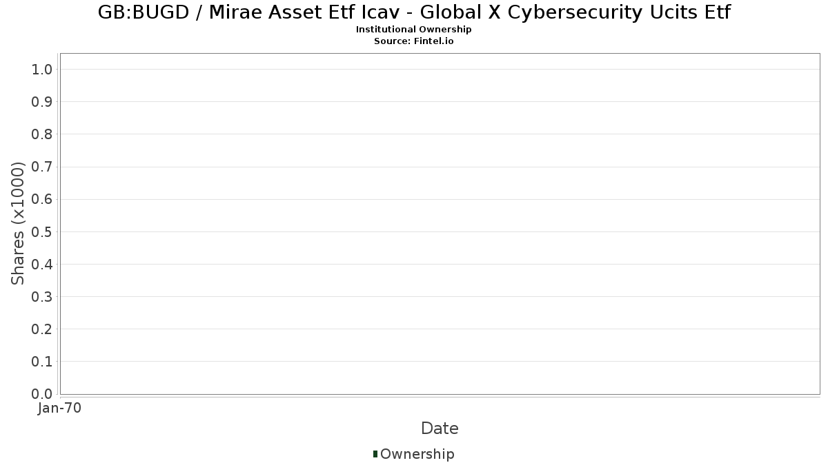 Mirae Asset Etf Icav - Global X Cybersecurity Ucits Etf (GB:BUGD) har 0 institutionelle ejere og aktionærer, der har indsendt 13D/G- eller 13F-formularer til Securities Exchange Commission (SEC). Største aktionærer omfatter .