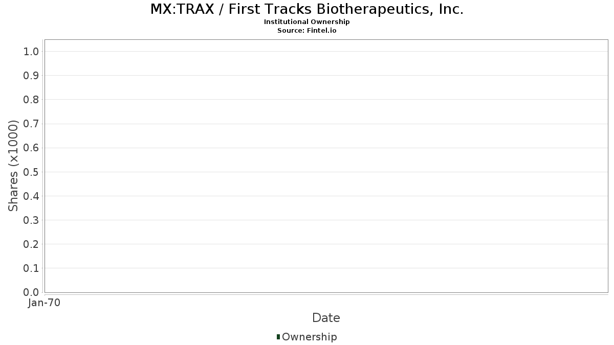 First Tracks Biotherapeutics, Inc. (MX:TRAX) har 0 institutionelle ejere og aktionærer, der har indsendt 13D/G- eller 13F-formularer til Securities Exchange Commission (SEC). Største aktionærer omfatter .