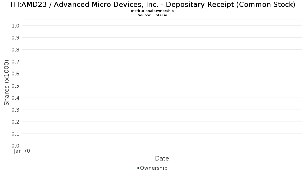 Advanced Micro Devices, Inc. - Depositary Receipt (Common Stock) (TH:AMD23) har 0 institutionelle ejere og aktionærer, der har indsendt 13D/G- eller 13F-formularer til Securities Exchange Commission (SEC). Største aktionærer omfatter .