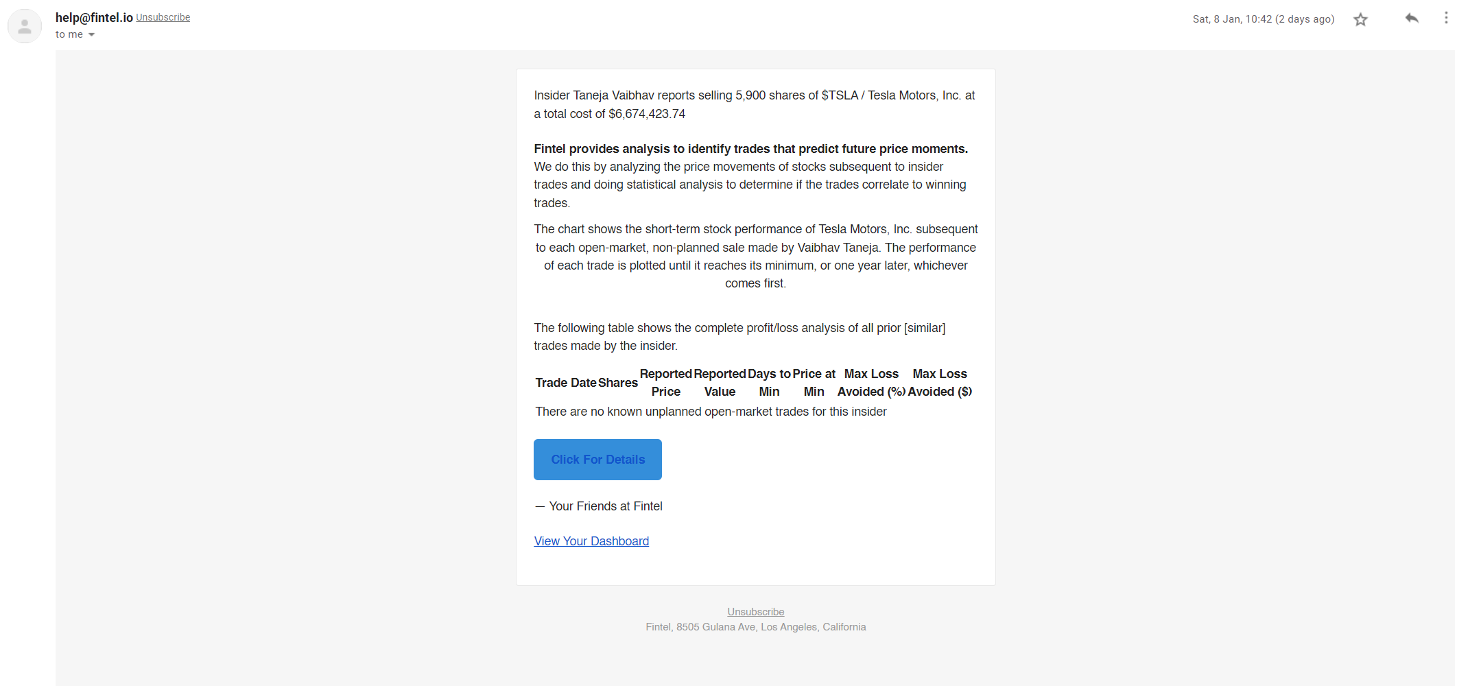Fintels alt-i-et traderværktøj giver dig mulighed for at opsætte tilpassede alarmer, når aktier er i spil. Gå ikke glip af sjældne ticker-muligheder, som du kunne have udnyttet. Alarmer er enkle og nemme at konfigurere med blot et par klik.